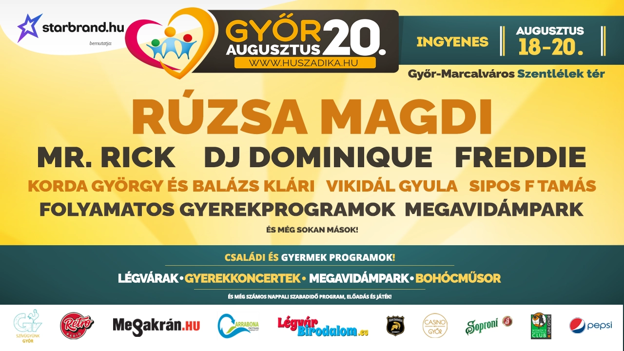 Fellépnek: Rúzsa Magdi, DJ Dominique, Mr.Rick, Vikidál Gyula, Freddie, Korda György és Balázs Klári, Sipos F Tamás, Bódi Guszti és Margó és még sokan mások!
