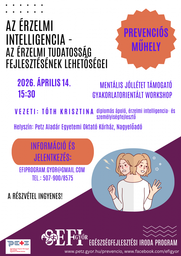 A győri Egészségfejlesztési Iroda a mentális jóllétet támogató gyakorlatorientált workshopot indít városunkban.