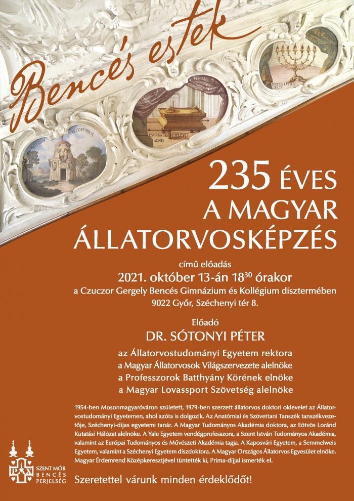 Dr. Sótonyi Péter az Állatorvostudományi Egyetem rektora tart előadást, 235 éves a magyar állatorvosképzés címmel.