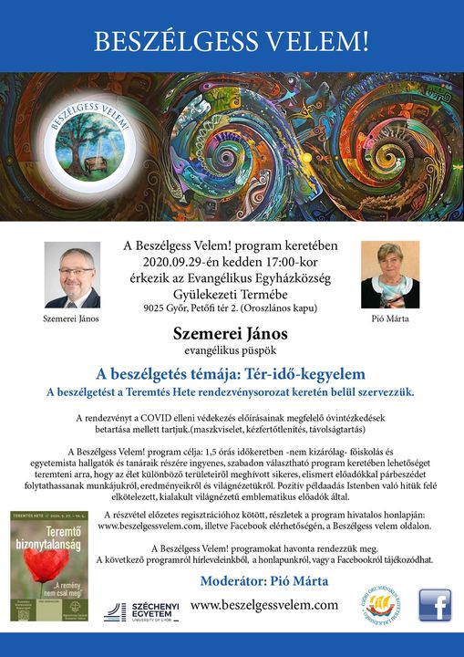 A Beszélgess Velem! program keretében szeptember 29-én, kedden 17 órakor érkezik az Evangélikus Egyházközség Gyülekezeti Termébe (Petőfi tér 2.)Szemerei János evangélikus püspök
