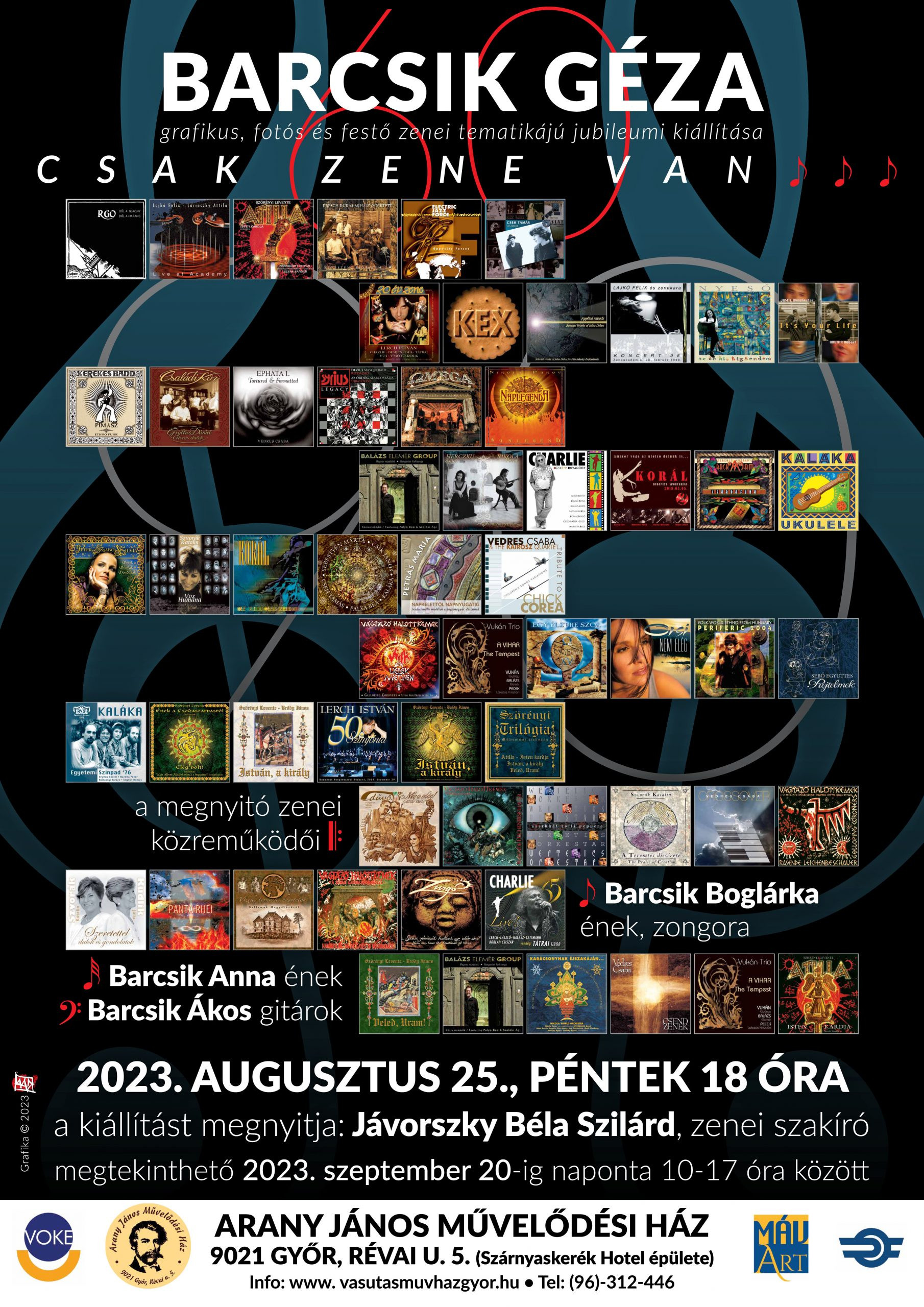 Barcsik Géza grafikus, fotós és festő zenei tematikájú jubileumi kiállítására várják az érdeklődőket augusztus 25-én (pénteken) 18 órára a győri Arany János Művelődési Házba (Szárnyaskerék épülete).