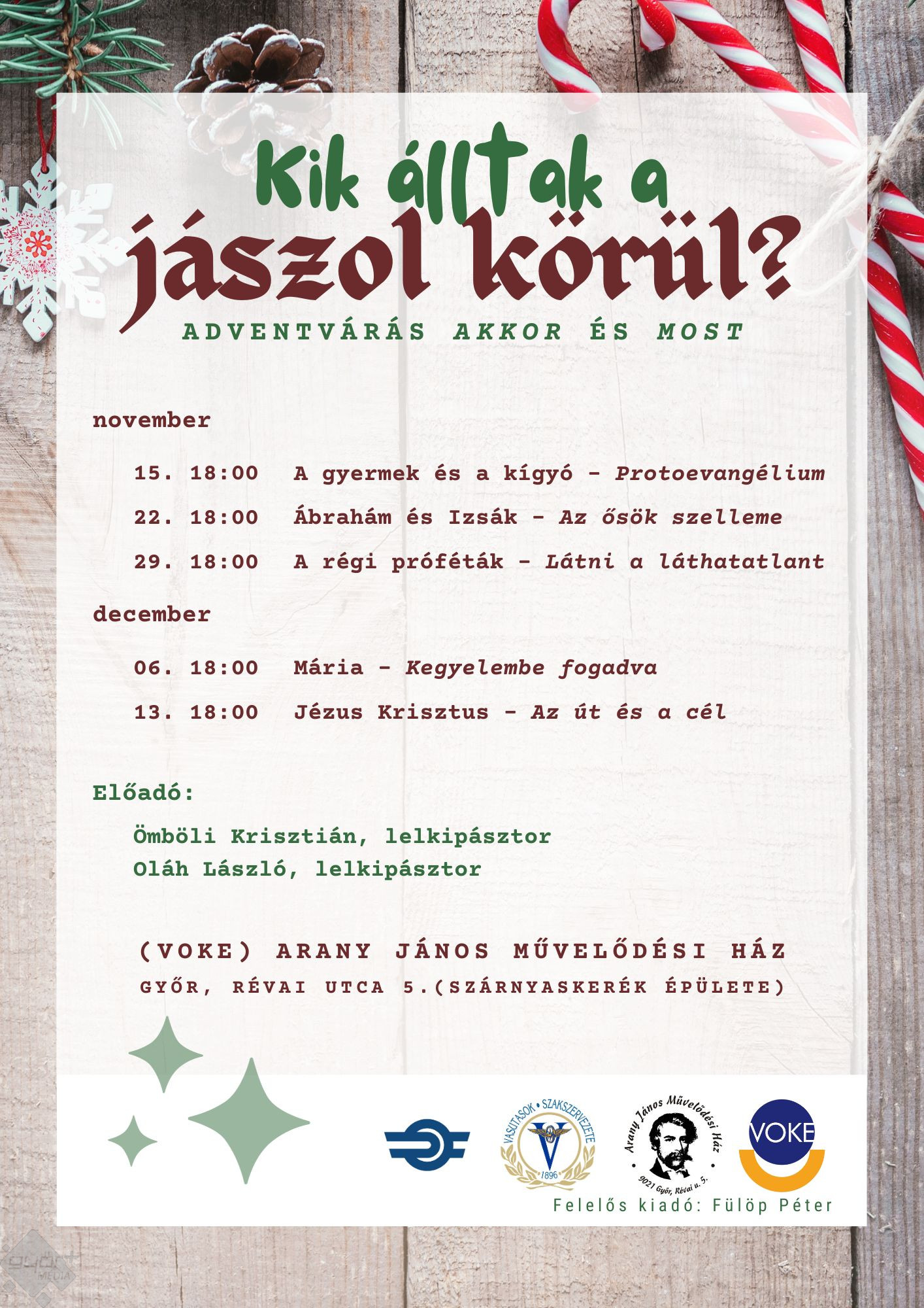 Az első előadás november 15. (szerda) 18 órakor lesz, címe: A gyermek és a kígyó – Protoevangélium.