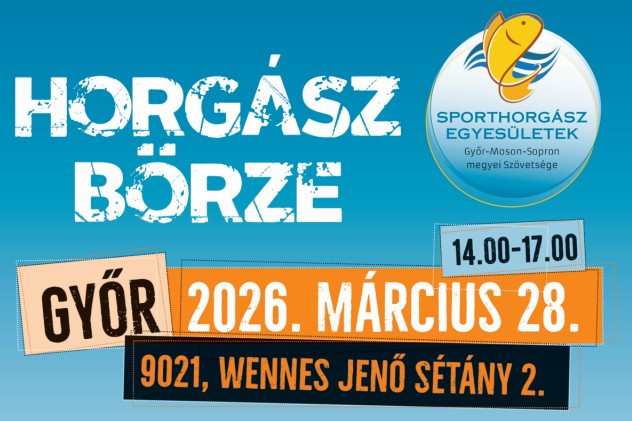 A horgászszezon kezdetén horgászbörzét szervez a Sporthorgász Egyesületek Győr-Moson-Sopron Megyei Szövetsége Győrben, a Rábatext Horgász Egyesület tanyaházában március 28-án szombaton.