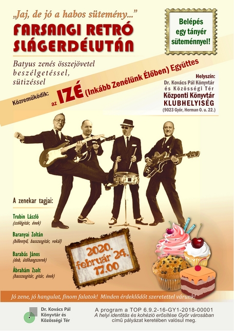 Batyus zenés összejövetelt tartanak a Dr. Kovács Pál és Közösségi tér klubhelyiségében (Győr, Herman O. u. 22.) február 24-én hétfőn 17 órától.