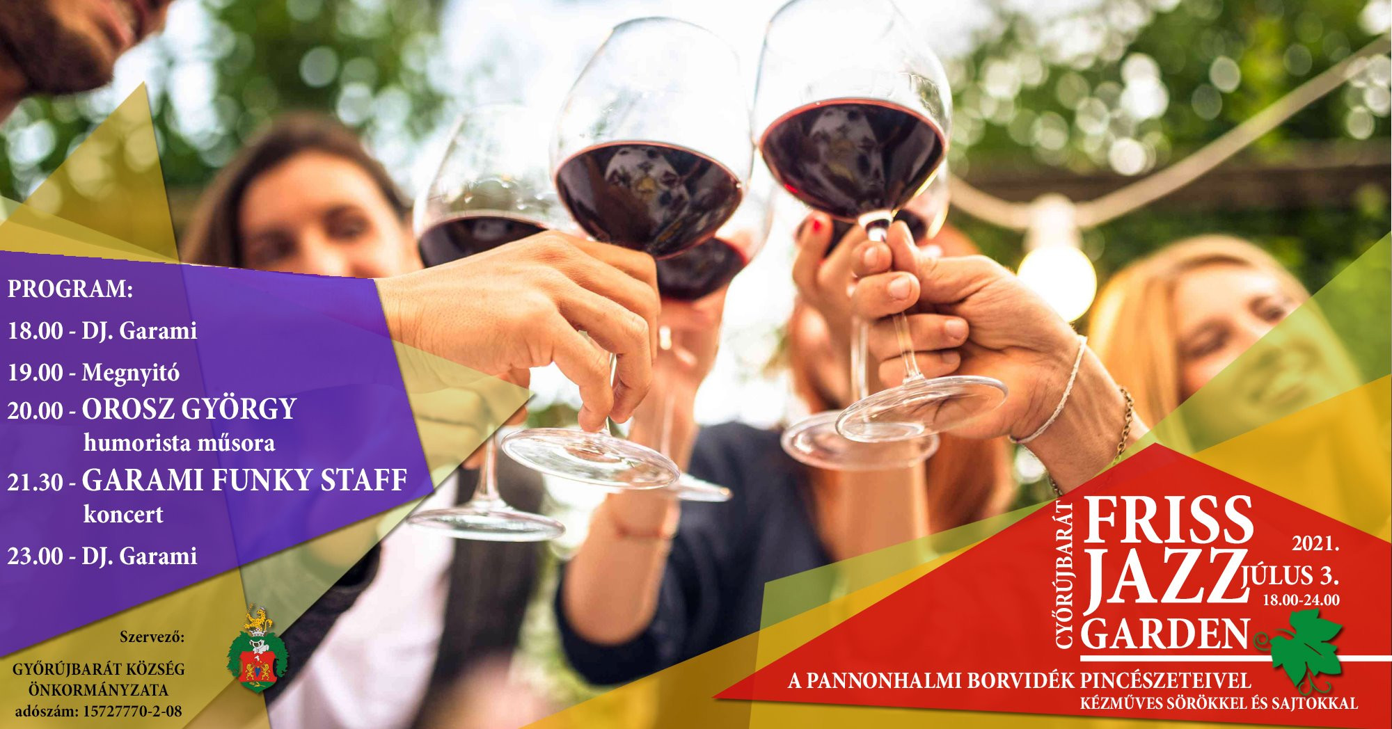 Színpadon Orosz György humorista és a Garami Funky Staff, a Pannonhalmi Borvidék borai, kézműves sajt és sör.