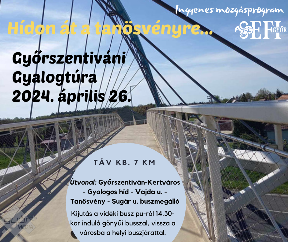 “Győrszentiván-Kertvárosból indulunk, majd a gyalogos hídon keresztül a szentiváni tanösvényre, 100-150 éves tölgyek közé sétálunk.