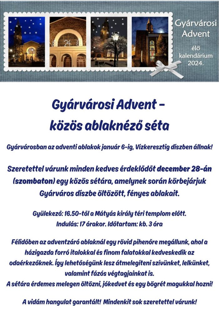 A “Gyárvárosi Advent – élő kalendárium” Facebook-csoport meghívóját az alábbiakban változatlan formában közöljük:
