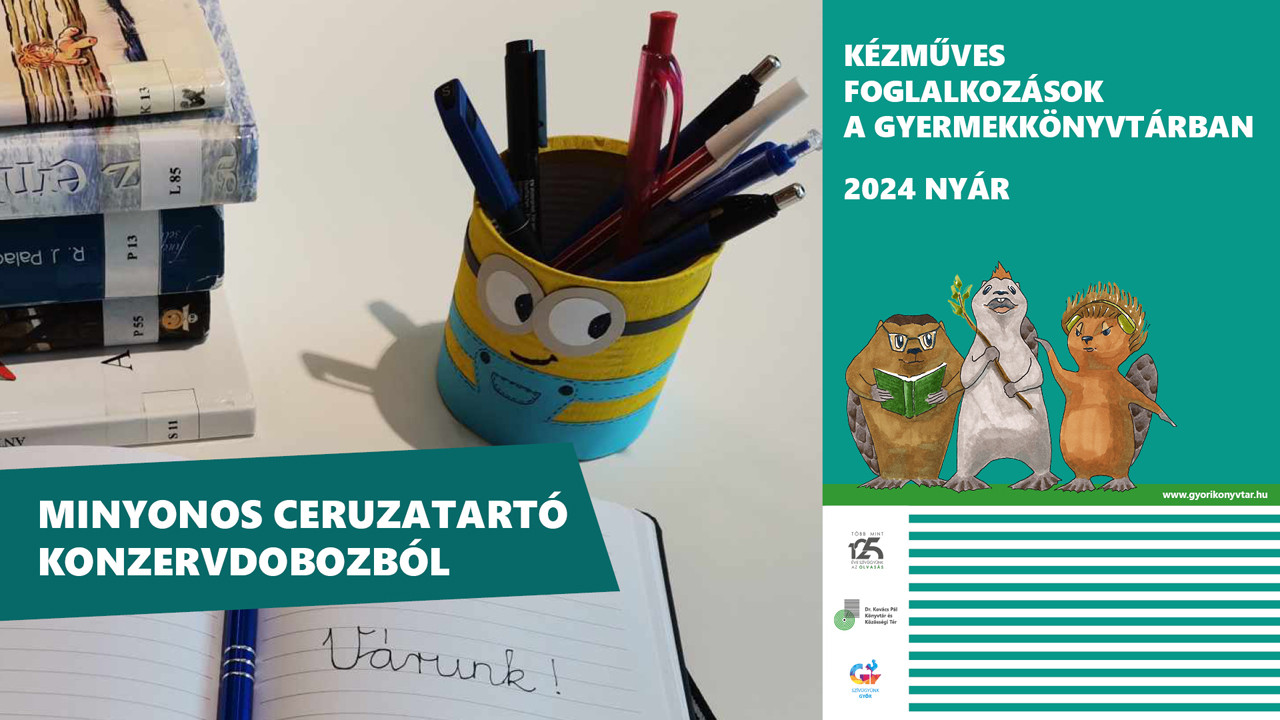 2024. július 4-én (csütörtök) 10.00 és 10.45 órakor kézműves programra várjuk a gyermekeket a Dr. Kovács Pál Könyvtár és Közösségi Tér Gyermekkönyvtárába (Győr, Herman Ottó u. 22.). A foglalkozáson Minyonos ceruzatartót készítünk konzervdobozból.