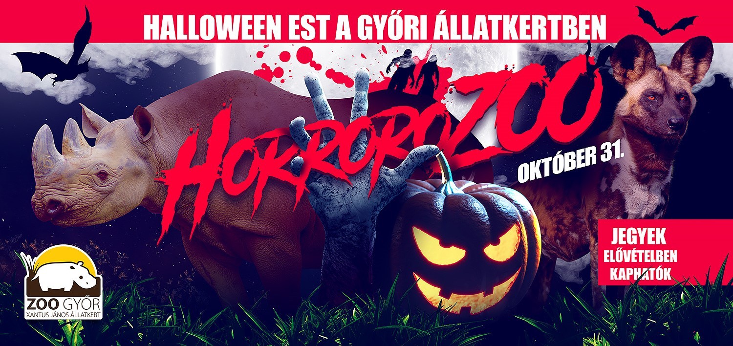 “Október 31-én este meghosszabbított nyitva tartással, 21 óráig, ismét nagyra tárulnak az állatkert kapui. Azt a bátor látogatót, aki belép a rémséges kapuk alatt, a„Horrorozó” izgalmas élménye várja, ahol besétálhat és rémüldözhet ismert horrorisztikus helyszíneken: Várnak a „ZooFűrész – ZooSikoly – Zombi expressz – ZooKör – A kripta állomás, Drakula gróf, a zombik és az éjszaka borzasztó teremtményei”!