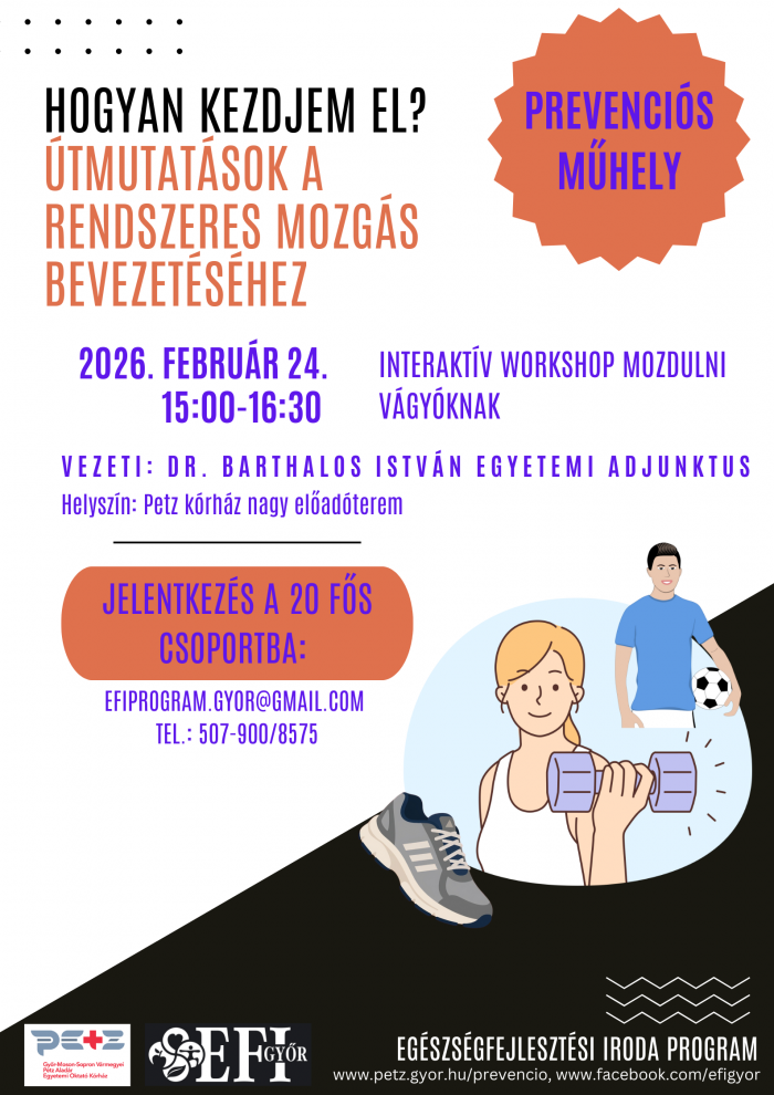 A mozogni vágyóknak szeretnék lendületet, kellő önbizalmat adni ahhoz, hogy hatékonyan támogathassák testi-lelki jóllétüket a sportolással. Dr. Barthalos István a Széchenyi István Egyetem Egészség- és Sporttudományi Karának adjunktusa, az Egészségfejlesztési Iroda számos mozgásprogramjának vezetője lesz a résztvevők segítségére.