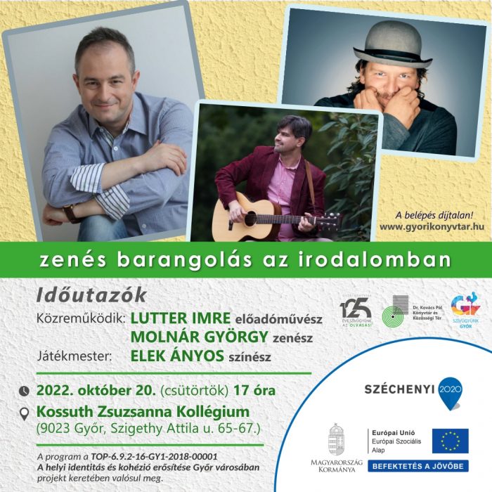Közreműködnek: Lutter Imre Wlassics, Bánffy- és Radnóti-díjas előadóművész, Molnár György Kaleidoszkóp-díjas verszenész, Elek Ányos játékmester.