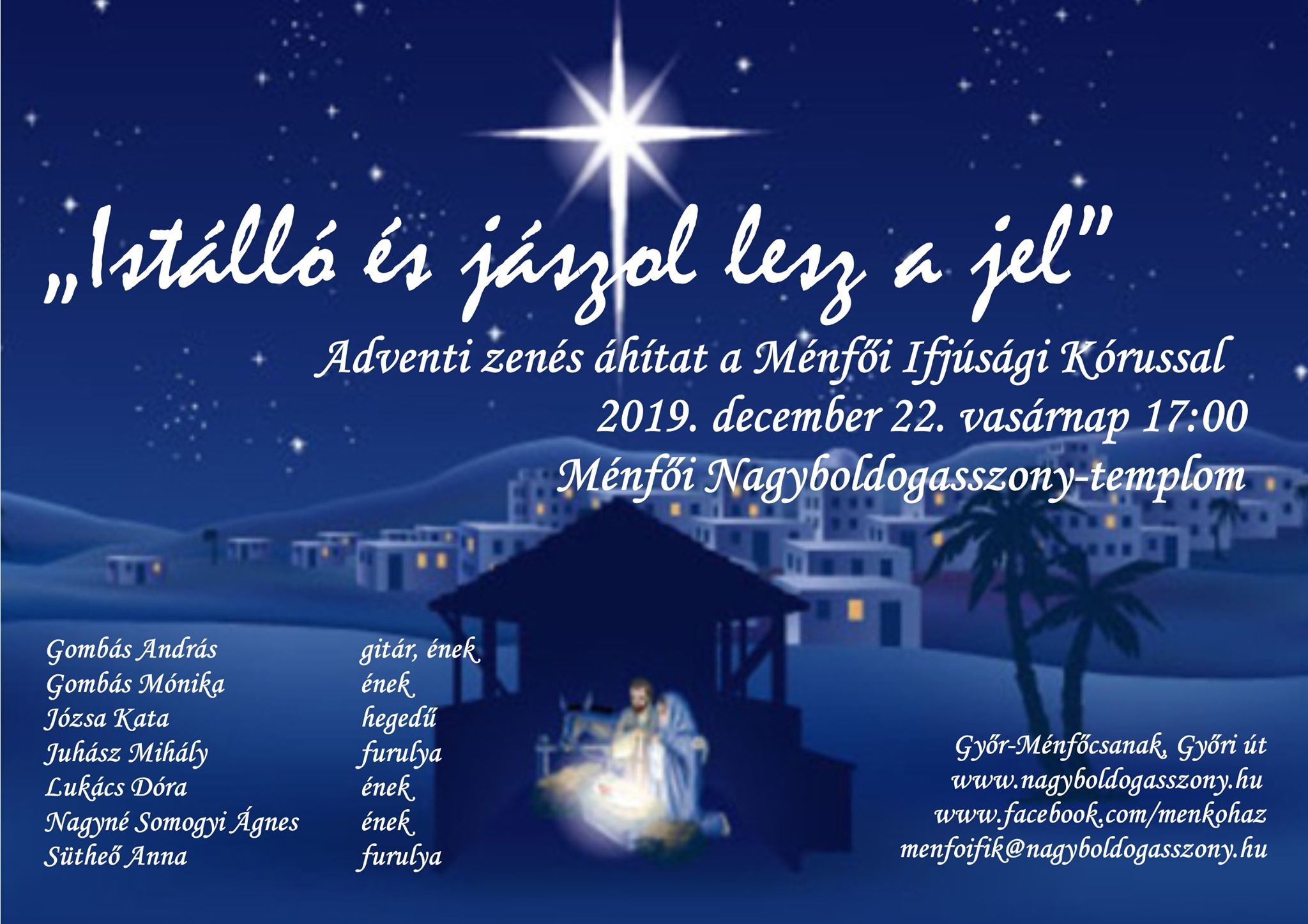 A koncert december 22-én 17 órakor kezdődik a Ménfői Nagyboldogasszony-templomban.