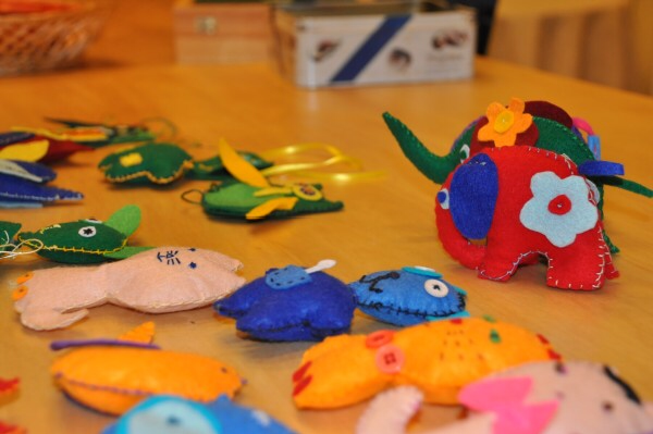 Vidám, színes zsákokat lehet varrni infúziós palackokra, valamint tündérkéket és színes, filcből készült állatfigurákat is készíthetnek az érdeklődők.