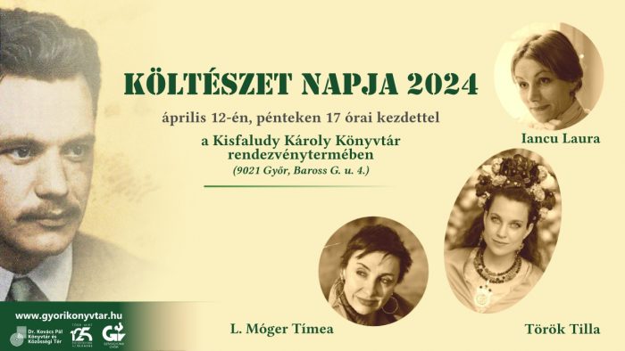 2024. április 12-én (péntek) a Kisfaludy Károly Könyvtár rendezvénytermében (9021 Győr, Baross G. u. 4.) 17 órakor költészet napi programunk veszi kezdetét.