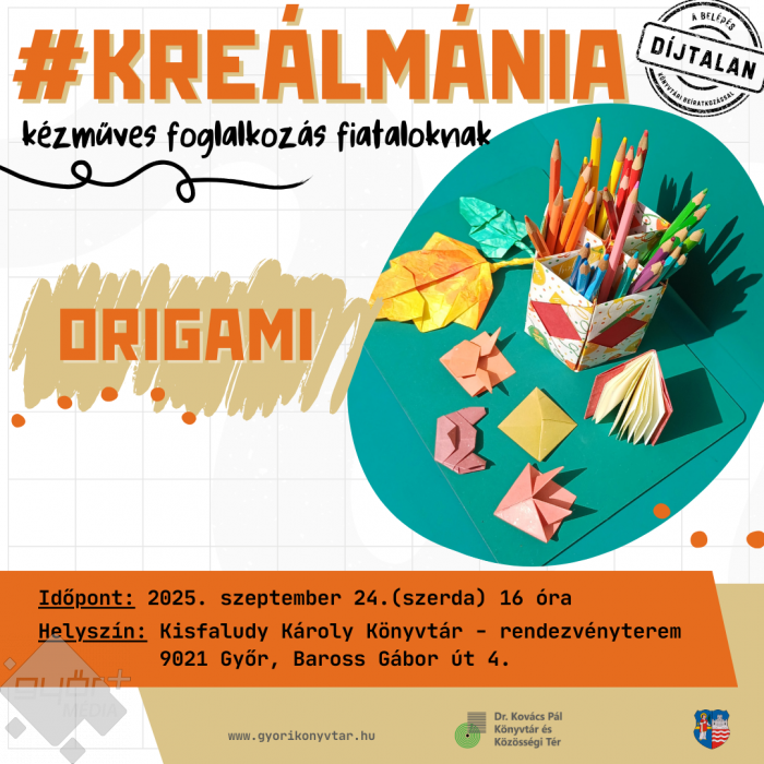 Mindenkit vár a #KREÁLMÁNIA program, amelynek keretében kézműves foglalkozást tartanak fiataloknak, ahol origami írószertartókat készíthetnek.