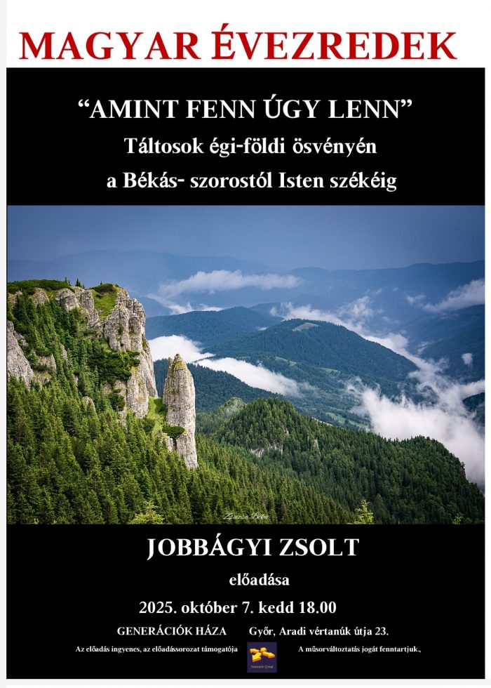 Program: Jobbágyi Zsolt előadása: „Amint fenn, úgy lenn” – Táltosok égi-földi ösvényén a Békás-szorostól Isten székéig