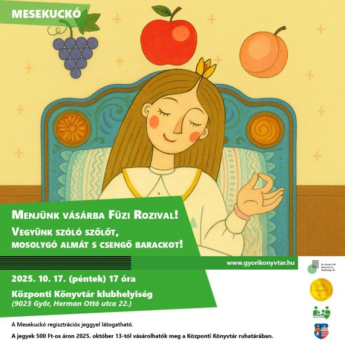 Jön a Mesekuckó következő alkalma, ahol közösen indulhatunk vásárba Füzi Rozival! Gyűjtsünk szóló szőlőt, mosolygó almát és csengő barackot – egy vidám, játékos délután keretében.