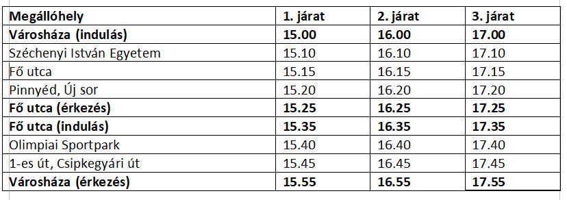 Indulás „Eszperantó út, autóbusz-állomás” megállóhelyről 15.30, 16.45 és 18.00 órakor