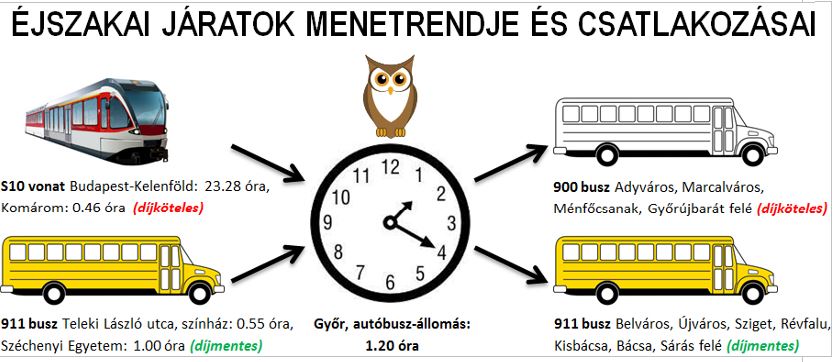 Figyelem! A fenti járatok közül kizárólag a 911 jelzésűek vehetők igénybe díjmentesen!