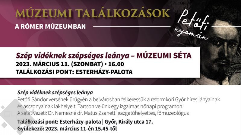 Petőfi Sándor versének ürügyén a belvárosban felkeressük a reformkori Győr híres lányainak és asszonyainak lakhelyeit. Tartson velünk egy izgalmas nőnapi programon!