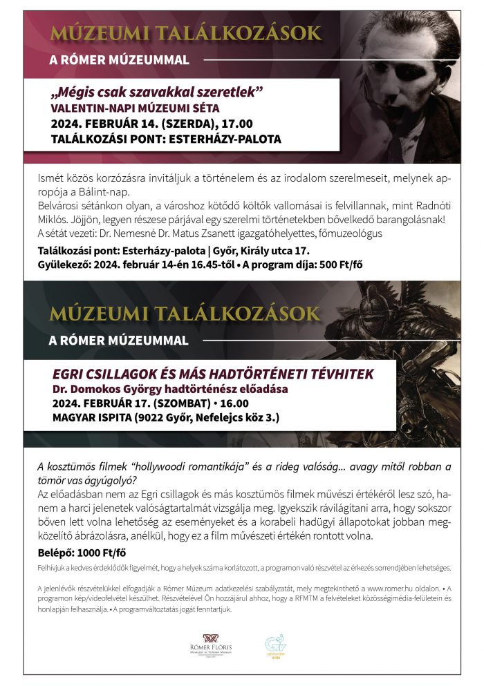A Rómer Múzeum gazdag progamkínálattal várja az érdeklődőket, mutatjuk a közelgő eseményeket.