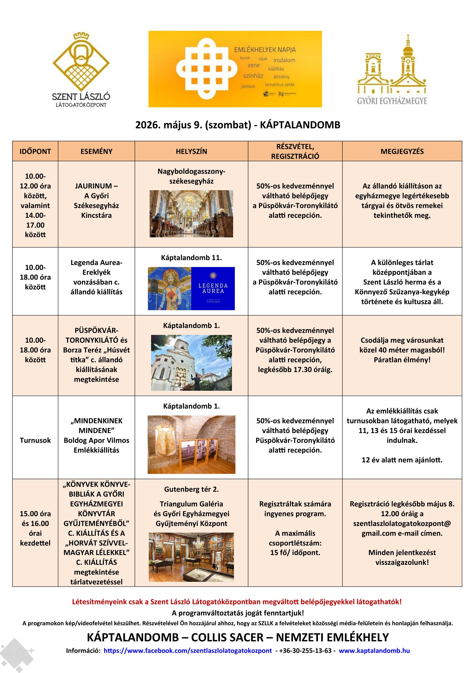 Május 9-én a Nemzeti Emlékhelyek Napja alkalmából 10.00 és 18.00 óra között gazdag programokkal várják az érdeklődöket a Káptalandombra.