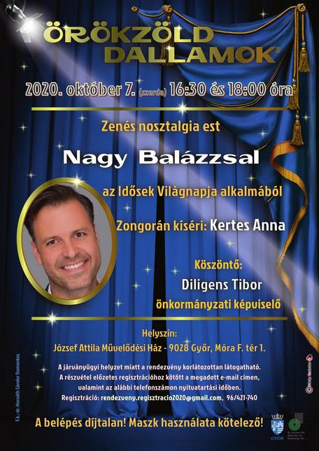 Örökzöld Dallamok címmel Nagy Balázs zenés műsorát hallhatják az érdeklődők október 7-én 16.30-kor és 18 órakor a József Attila Művelődési Házban.