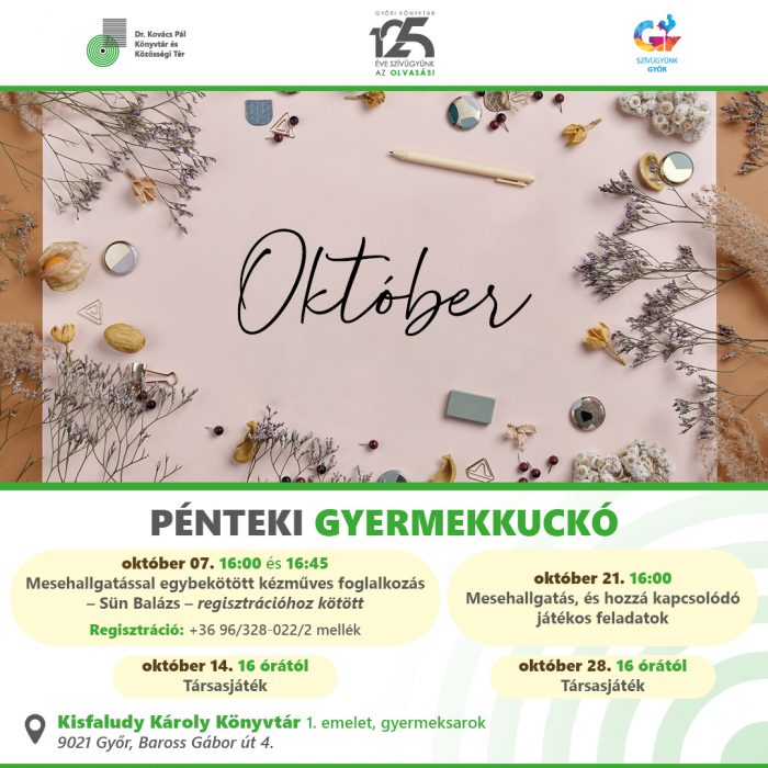 • Október 21. – 16 óra – Mesehallgatás, és hozzá kapcsolódó játékos feladatok