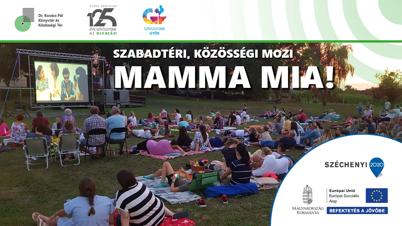Győrszentivánon, a Molnár Vid Bertalan Művelődési Központ előtti téren (Váci Mihály u. 3.) szabadtéri, közösségi mozi részesei lehetnek. Ezen az estén a Mamma Mia! amerikai zenés vígjátékot nézhetik meg. (12 éven aluliak számára a film megtekintése nagykorú felügyelete mellett ajánlott!)