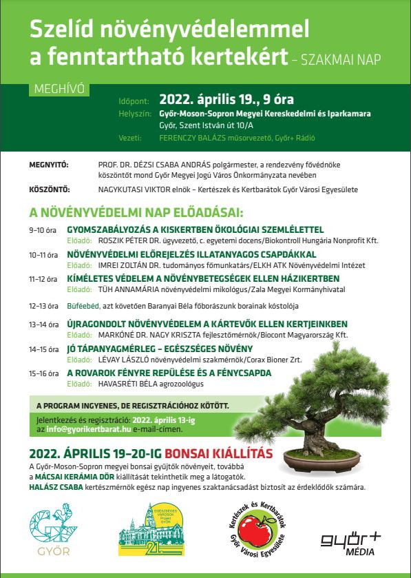 Az esemény vezeti Ferenczy Balázs, a Győr+ Rádió műsorvezetője, a Kertbarát Magazin szerkesztője.