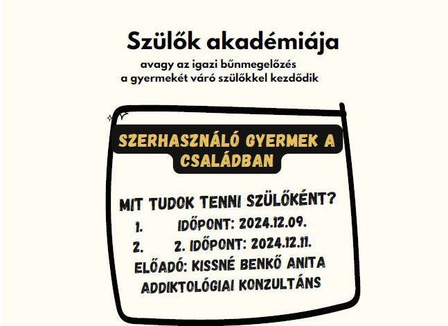 Szülők akadémiája – Szerhasználó gyermek a családban (második előadás)