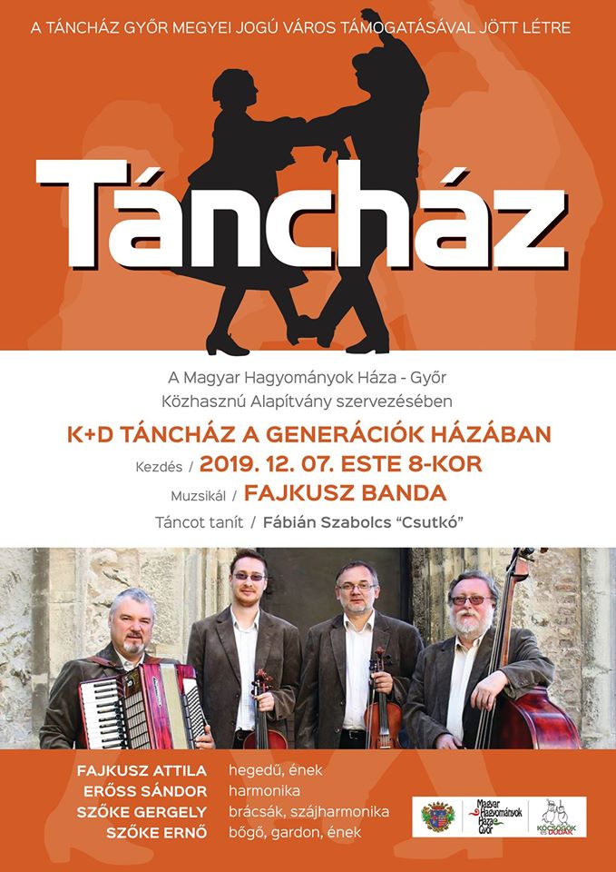 A táncház december 7-én 20 órakor kezdődik a Generációk Házában (Győr, Aradi vértanúk útja 13.).