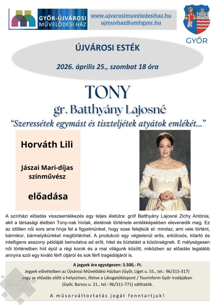 Tony – gróf Batthyány Lajosné története elevenedik meg Győrben