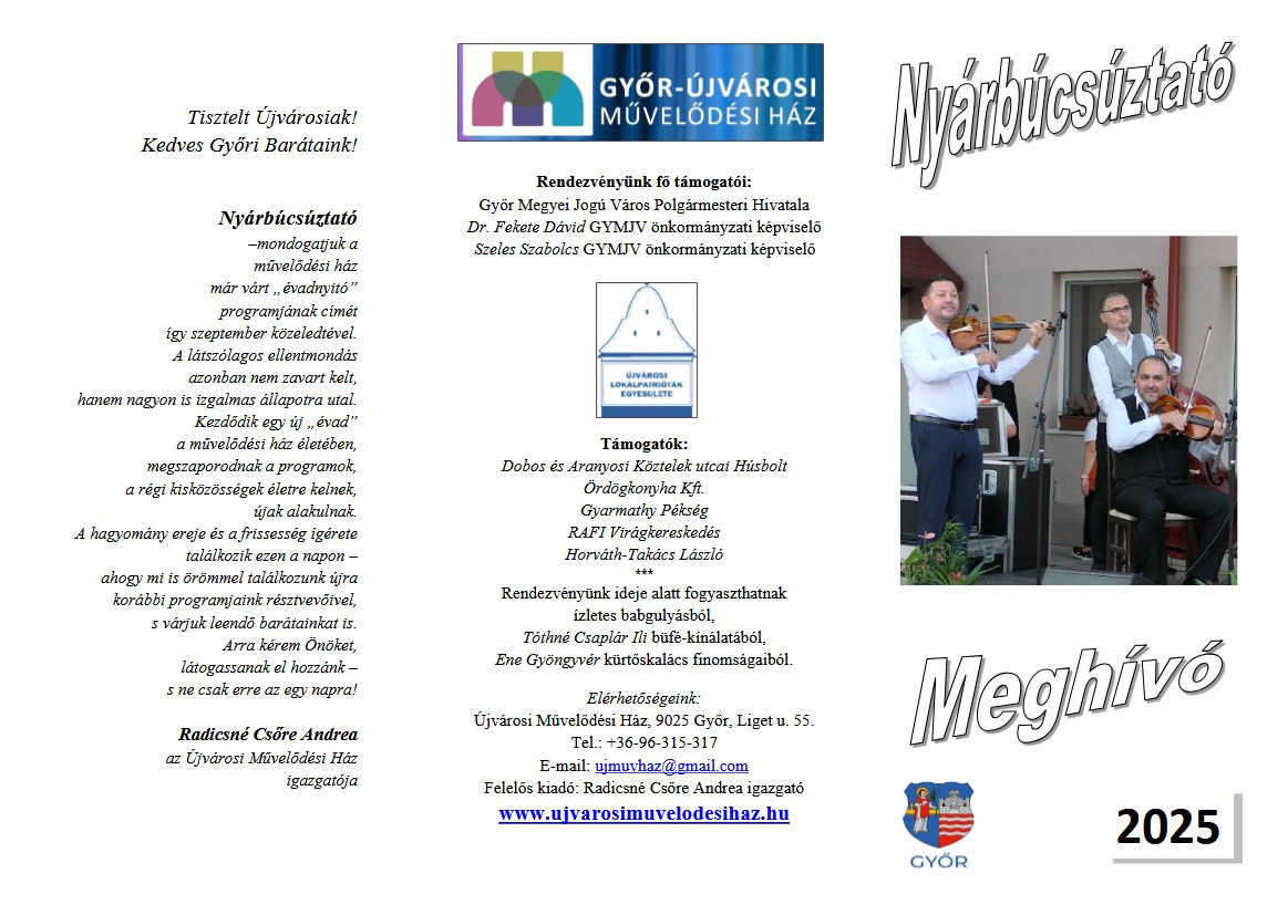 Helyszín: Újvárosi Művelődési Ház, Győr, Liget utca 55.
