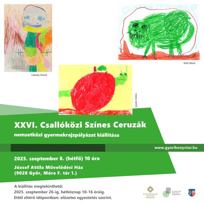 2025. szeptember 8-án (hétfőn) 10 órakor a József Attila Művelődési Házban (9028 Győr, Móra F. tér 1.) nemzetközi gyermekrajzpályázat kiállítás nyílik XXVI. Csallóközi Színes Ceruzák címmel.