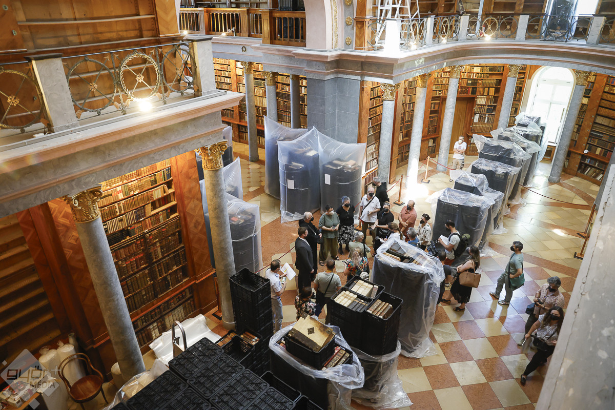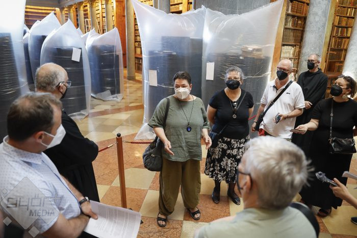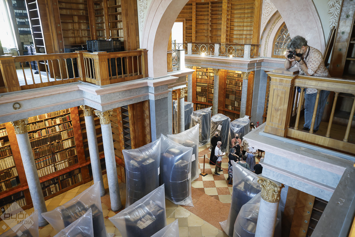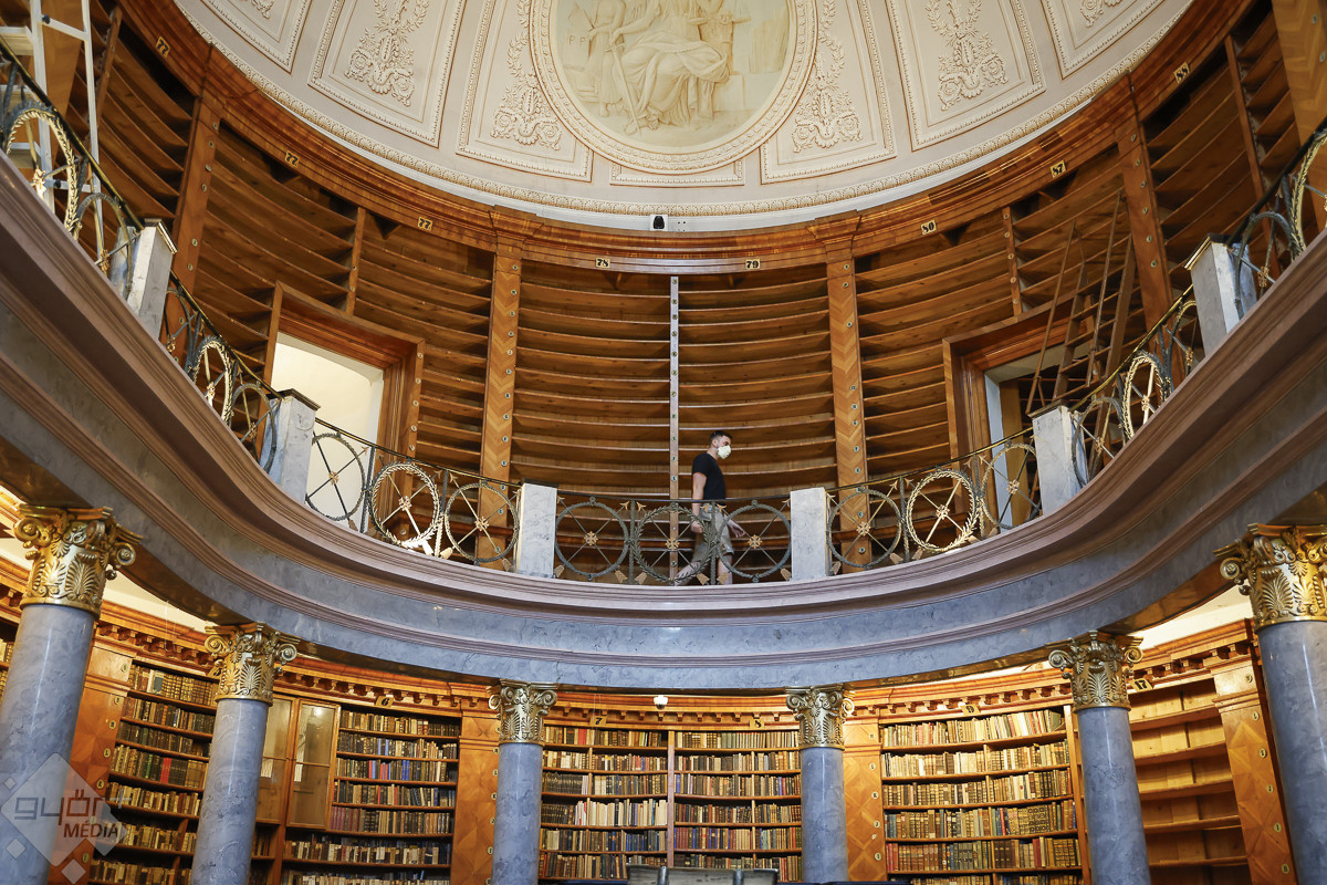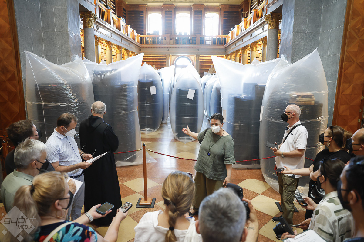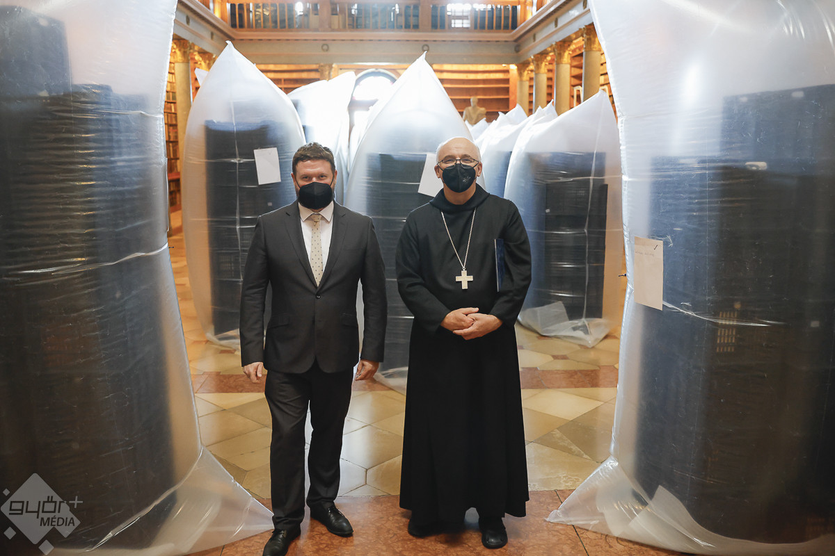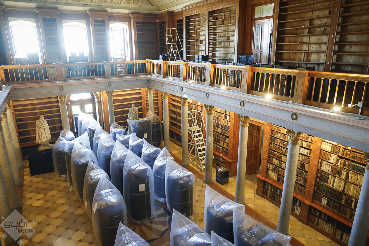 A könyvtárba a Covid-fertőzések idejéről ismert szájmaszkkal lehetett csak belépni. Nem az emberre veszélytelen kenyérbogár miatt kellett a védőeszköz. A könyvek lepakolása következtében az érdemben és átfogóan 200 éve nem bolygatott polcokról a légtérbe kerülhettek akár az emberi szervezetre is ártalmas kórokozók – magyarázta Hajdú Zsófia okleveles restaurátor, a könyvek megtisztításának szakmai vezetője.