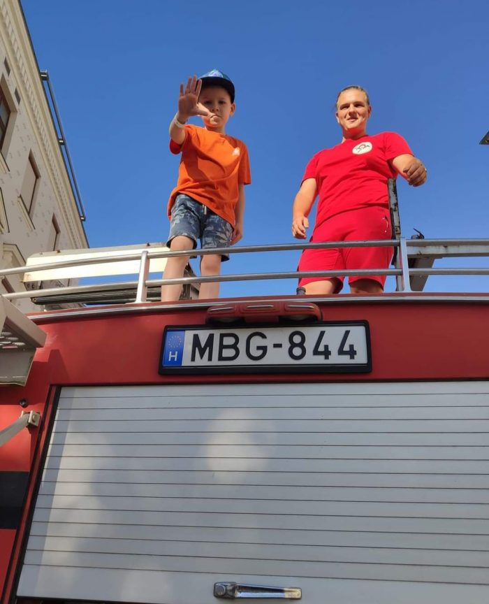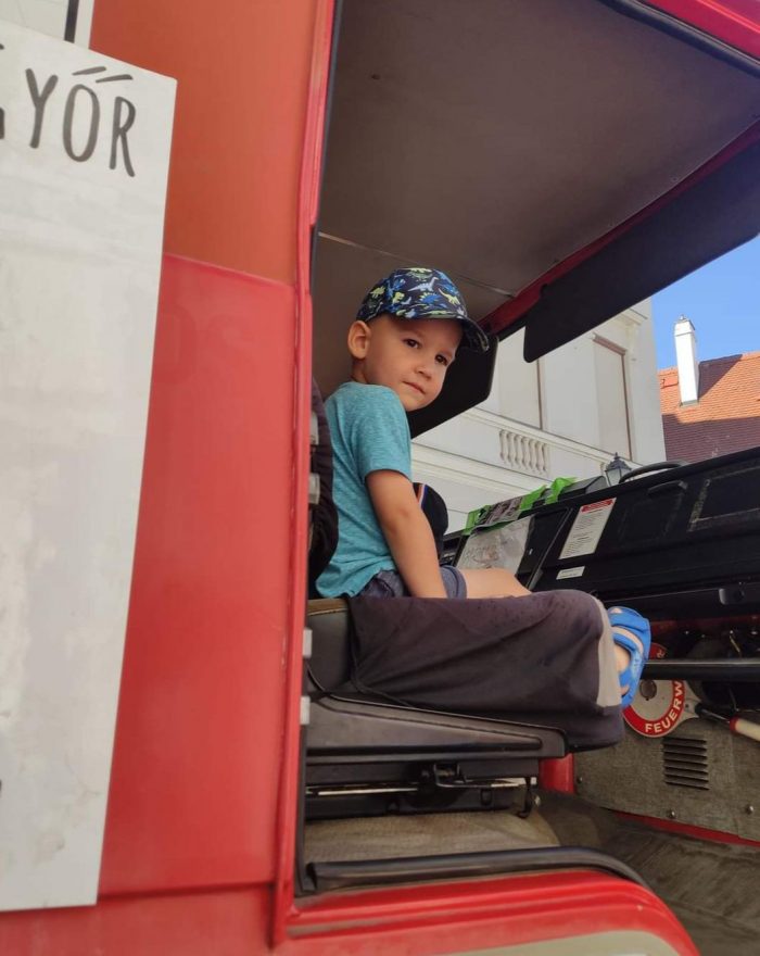 „Bendegúz eleve szereti az autókat, főleg amik gyorsan mennek. Amikor tűzoltóautót látunk, mindig meg kell állnunk, mert teljes átéléssel csodálja őket. Nem csoda, hiszen gyorsan mennek, nagyok, hangosak és villognak. Egy gyereket ez elvarázsol, de persze ilyenkor mindig mondjuk a srácoknak, hogy ők azért siethetnek ennyire, mert segíteni mennek, életet menteni. Amikor itt Győrben nyílt nap van a laktanyában, mindig lelkesek a srácok, a tűzoltók pedig nagyon kedvesek mindenkivel. Jó hangulatban és élményekkel telve távozunk mindig” – mesélte Tamasics Andi, a két srác édesanyja.