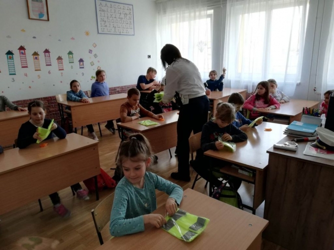 Majorné Bajnok Eszter rendőr százados, a Győri Rendőrkapitányság Közlekedésrendészeti Osztály munkatársa a Lébényi Általános Iskola és Alapfokú Művészeti Iskola Bezi telephelyére látogatott el március 22-én. Az alsó tagozatos gyerekek nagy szeretettel fogadták a századost, és csillogó szemekkel vették át a biztonságos közlekedést szolgáló láthatósági mellényeket.
