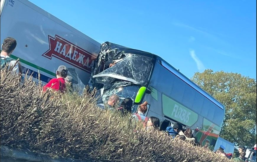 Autóbusz ütközött össze egy kamionnal az M1-es autópályán, a 75-ös és a 76-os kilométer között, Mocsa térségében. A baleset a főváros felé vezető oldalon történt. Műszaki mentés céljából a komáromi hivatásos tűzoltók vonultak ki a helyszínre, ahová mentőhelikopter is érkezett. Az érintett útszakaszon forgalomkorlátozásra kell számítani.