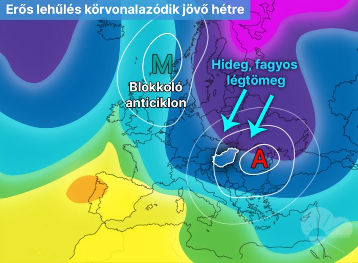A jelenlegi számítások szerint úgy tűnik, hogy jövő hét elejére egy blokkoló anticiklon épülhet ki Európa északi, északnyugati területei fölött utat nyitva az észak-északkelet felől érkező hideg, fagyos légtömegeknek. Ez annyit jelent, hogy térségünkben is komolyabb lehűlés körvonalazódik, jövő héten bizony olyan tájai is lehetnek az országnak, ahol egész nap fagyhat.