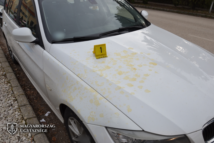 „A férfi az utcán parkoló autó bal hátsó szélvédőjét egy csúzliból kilőtt csapágygolyóval betörte, a teljes bal oldalát végigkarcolta, motorháztetejét körömlakklemosóval leöntötte, valamint az első szélvédő jobb felső sarkát is megrongálta” – szerepel a közleményben.