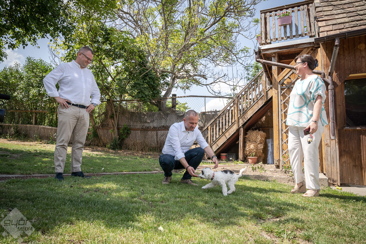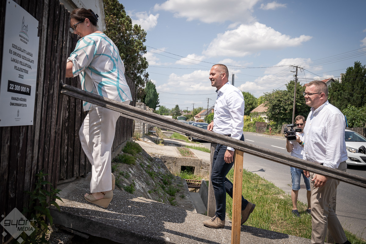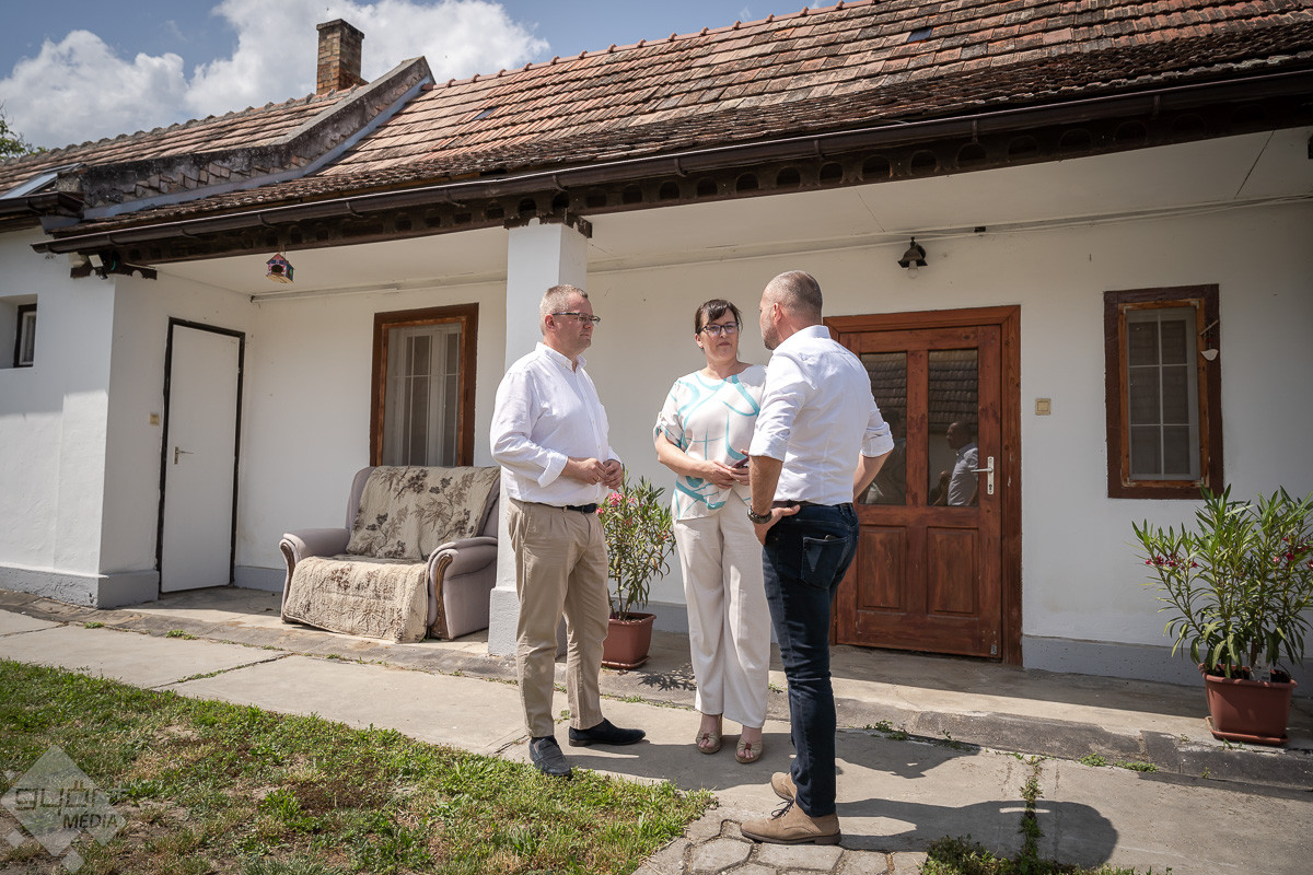 Gyopáros Alpár, dr. Fekete Dávid és Hadaricsné Balogh Krisztina Ravazd polgármestere közösen látogatott el abba lakóházba, amelynek a megvétele és a felújítása is a Magyar Falu Program segítségével valósulhatott meg.