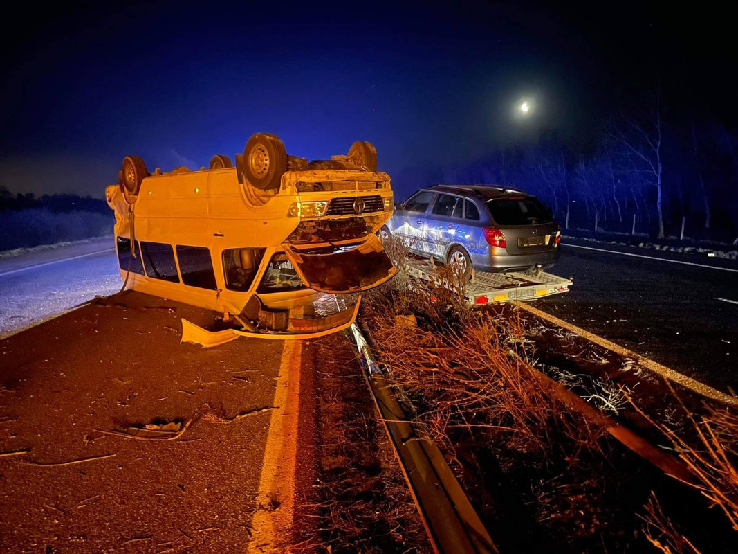 A Baleset-info.hu információi szerint egy bolgár rendszámú autószállító tréler vezetője az M1-es autópályán haladt, amikor vezetés közben elaludt. Ennek hatására elvesztette uralmát a járműve felett, ami átszakította a belső szalagkorlátot, majd a szemközti oldalon felborult. Információink szerint az autóban utazó román állampolgárságú személyek az eset során nem sérültek meg.