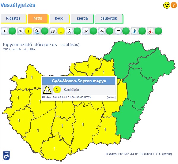 Az északnyugatira forduló szelet erős, viharos lökések kísérhetik, emiatt többek között megyénkre is figyelmeztetés érvényes. A napi csúcsértékeket a reggeli órákban mérhettünk, délután 4-5 fok körül alakul a hőmérséklet.