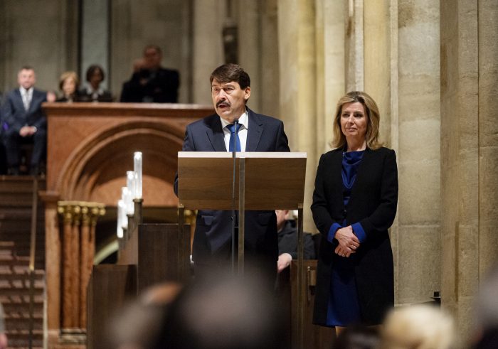 „Akiben valóban él a felebaráti szeretet, lehetetlen, hogy ne találjon nélkülözőkre. Ne találja meg azokat, akik személy szerint várnak rá” – kezdte Pilinszky János gondolataival köszöntőjét az egykori köztársasági elnök, majd így folytatta: „Ki ne érezte volna már életében, hogy a feladatok egész egyszerűen rá találnak. Persze néha ennek a találkozásnak vannak gátjai, korlátai” – mondta Áder majd felelevenítette a Tours-i Szent Márton és a ludak történetét, egyúttal napjaink nehézségeire is rámutatott. „A koronavírus-járvány sok mindenre rávilágított, sok mindent kellett átgondolnunk. A Regőczi Alapítvány létrehozása feleségemmel közösen, a legtermészetesebb elhatározás volt. A késztetésből született, hogy muszáj tenni valamit, és az érzésből, hogy tegye mindenki azt amit megtehet, amire képességei, lehetőségei kijelölik” – fogalmazott Áder János, majd köszönetet mondott feleségének kitartó és szeretetteljes munkájáért, és mindazoknak, akik valamilyen formában segítik az alapítvány működését. A díjazott végezetül hozzátette, hogy ez a mostani elismerés nagy megtiszteltetés, tovább ösztönzi őket munkájukban, Pilinszky gondolataira visszautalva: „azért, hogy a felebaráti szeretet rátaláljon a nélkülözőkre!”