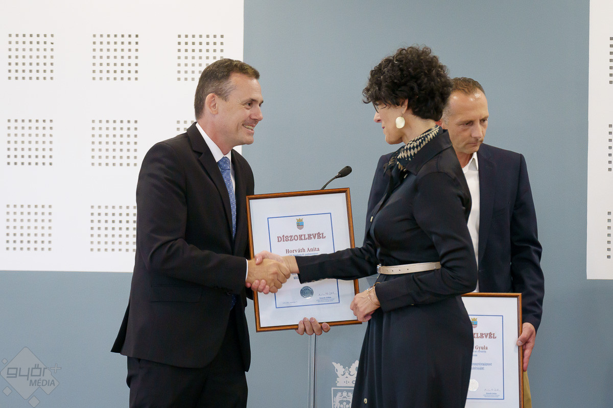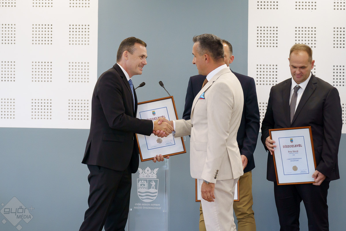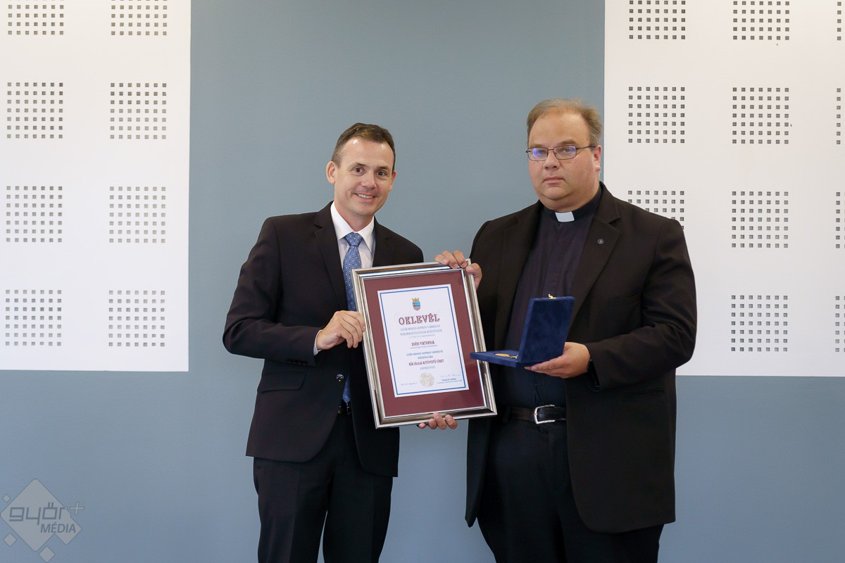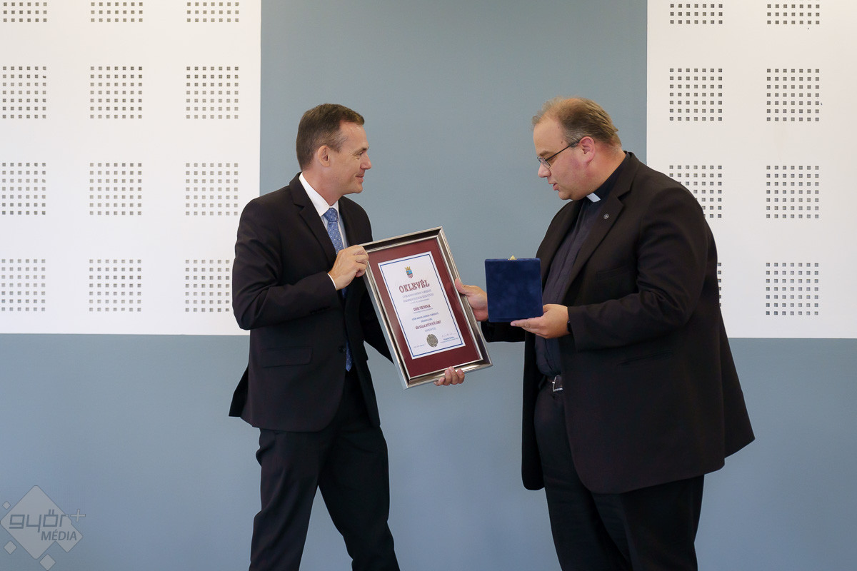 Az ünnepségen ezt követően kezdetét vette a díjak átadása. A Győr-Moson-Sopron Vármegye Díszpolgára Kék Szalag Kitüntető Címet Zsódi Viktor, a Piarista Rend Magyar Tartományának tartományfőnöke kapta.