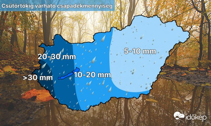 Nagyobb mennyiségű csapadék a Dunántúlon várható a mediterrán ciklon felhőzetéből, nyugaton, délnyugaton összességében 30-40 mm is összegyűlhet.