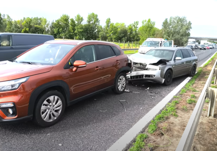 A balesetről az autosvilag.com olvasója felvételt készített, aki így számolt be a portálnak a történtekről: „2025. július 12-én az M1 autópályán Budapest felé mindkét sáv telített volt, a belső sávban haladtunk. Mi egy barna Suzuki S-Crossban, előttünk egy belga Volkswagen, mögöttünk egy német Audi. A 116-os kilométerkő közelében hirtelen egy fantom torlódás alakult ki. A belső sáv gyorsan leállt, vészfékezni kellett. Valószínűleg sikerült volna a megállási művelet, ha az Audi mögött nem jön eszeveszett sebességgel egy magyar Audi A6-os. Kb. 50 méter fékút után úgy meglökte hátulról a mögöttünk haladó Audit, hogy az megpördült, és bennünket jobbról kikerülve merőlegesen az előttünk haladó Volkswagen oldalába ütközött. Azután még mindig akkora sebessége volt, hogy belénk csapódva bennünket is letarolt hátulról.”