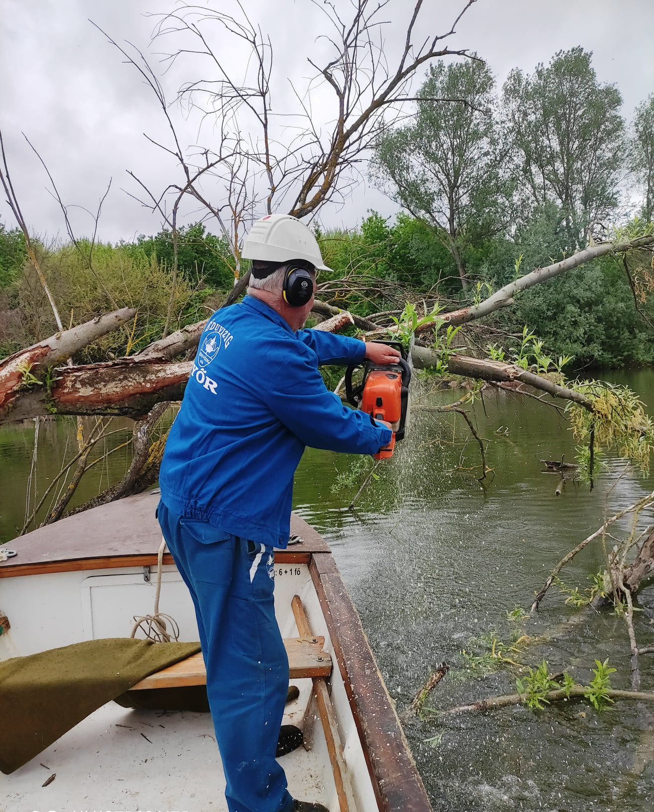 Végzik a medertisztítást az Észak-Dunántúli Vízügyi Igazgatóság munkatársai a Szigetközben. A szakemberek eltávolítják a műtárgyaknál feltorlódott uszadékokat, a mederbe dőlt fákat, illetve a medret keresztben elzáró, hód által épített duzzasztásokat.