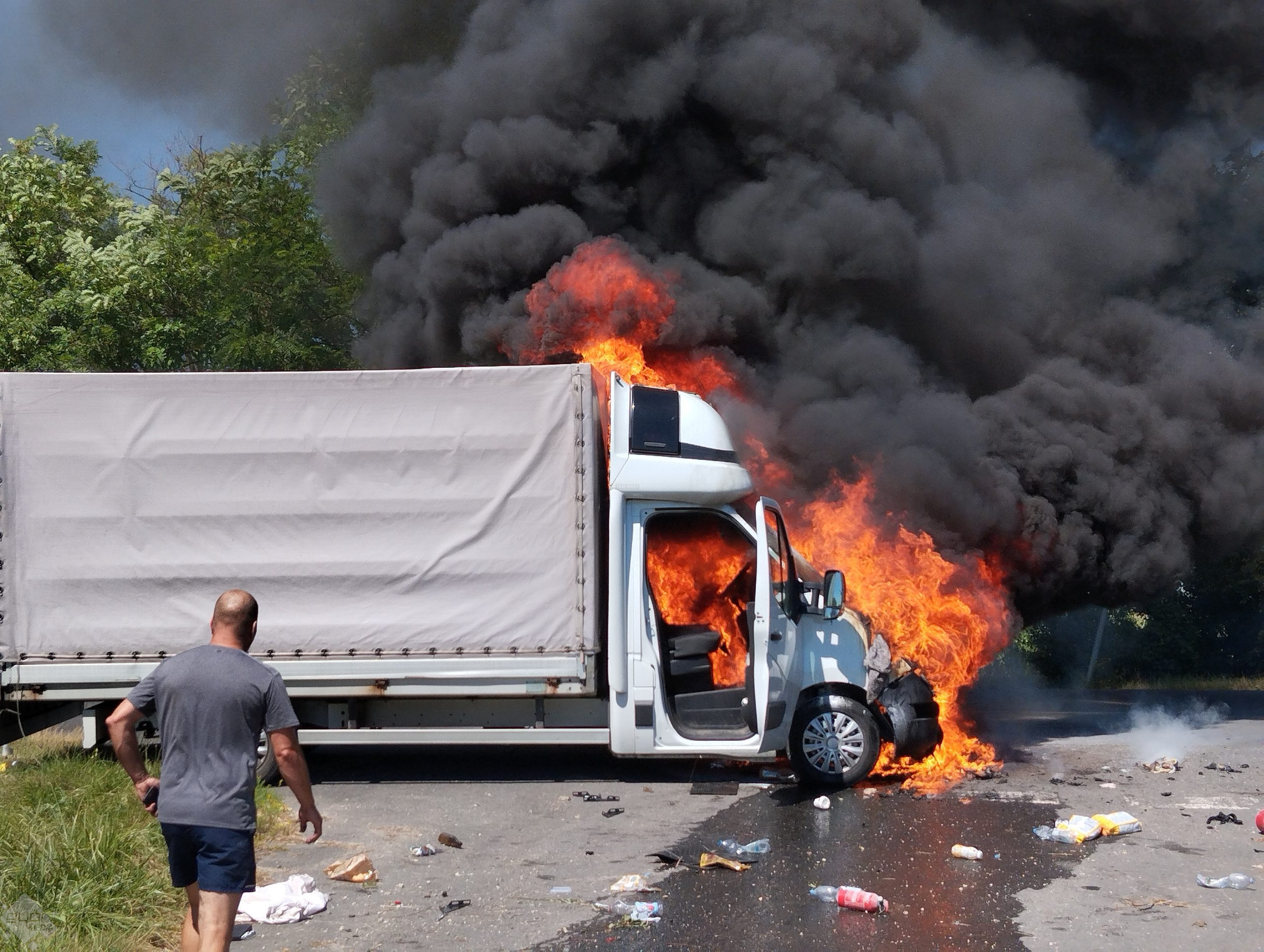 Az esetről fotókat is kaptunk, olvasónk ugyanis elsőként állt meg a tűzesetnél segítséget nyújtani: